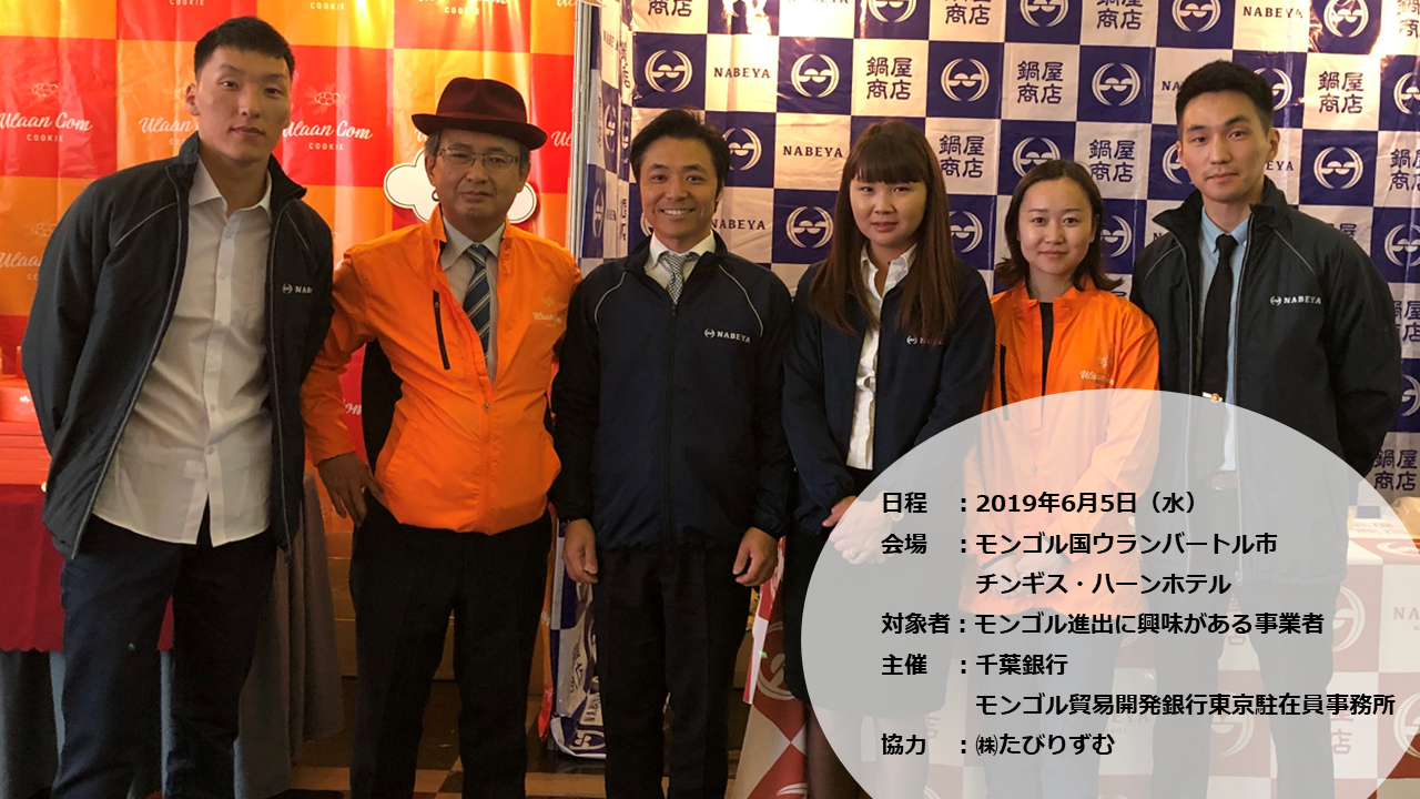 昨今、日本とは経済連携協定(EPA)が発効され、これからは二国間で貿易や投資環境の整備が進むことが期待されています。日本国内の事業者にとってビジネスチャンスの拡大が期待されるなかでの開催となります。千葉銀行は、取引先企業のモンゴル市場への進出と販路拡大を支援する目的で2012年より現地商談会を継続開催されています。